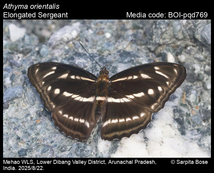 Anonymous 2025. Athyma orientalis Elwes, 1888 – Elongated Sergeant. In Kunte, K., S. Sondhi, and P. Roy (Chief Editors). Butterflies of India, v. 4.12. Published by the Indian Foundation for Butterflies. URL: https://www.ifoundbutterflies.org/athyma-orientalis, accessed 2025/10/07.