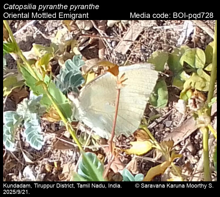 Saji K., M. Bhakare & S. Debnath 2025. Catopsilia pyranthe (Linnaeus, 1758) – Mottled Emigrant. In Kunte, K., S. Sondhi, and P. Roy (Chief Editors). Butterflies of India, v. 4.12. Published by the Indian Foundation for Butterflies. URL: https://www.ifoundbutterflies.org/catopsilia-pyranthe, accessed 2025/10/07.