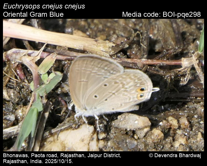 Saji K 2025. Euchrysops cnejus (Fabricius, 1798) – Gram Blue. In Kunte, K., S. Sondhi, and P. Roy (Chief Editors). Butterflies of India, v. 4.12. Published by the Indian Foundation for Butterflies. URL: https://www.ifoundbutterflies.org/euchrysops-cnejus, accessed 2025/10/21.