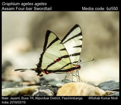Anonymous 2025. Graphium agetes (Westwood, 1843) – Four-bar Swordtail. In Kunte, K., S. Sondhi, and P. Roy (Chief Editors). Butterflies of India, v. 4.12. Published by the Indian Foundation for Butterflies. URL: https://www.ifoundbutterflies.org/graphium-agetes, accessed 2025/11/15.