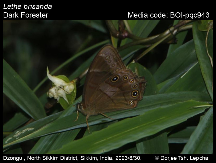 Anonymous 2025. Lethe brisanda de Nicéville, 1886 – Dark Forester. In Kunte, K., S. Sondhi, and P. Roy (Chief Editors). Butterflies of India, v. 4.12. Published by the Indian Foundation for Butterflies. URL: https://www.ifoundbutterflies.org/lethe-brisanda, accessed 2025/10/07.