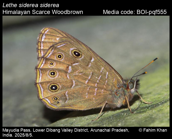Anonymous 2025. Lethe siderea Marshall, [1881] – Scarce Woodbrown. In Kunte, K., S. Sondhi, and P. Roy (Chief Editors). Butterflies of India, v. 4.12. Published by the Indian Foundation for Butterflies. URL: https://www.ifoundbutterflies.org/lethe-siderea, accessed 2025/12/06.