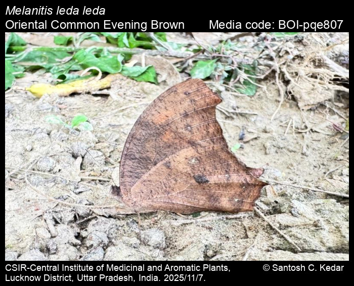 Saji, K., H. Ogale, R. Lovalekar, Nitin R., A. Mitra, S. Hiremath, P. Gokhale, S. Debnath, and R. P. Mahajan 2025. Melanitis leda (Linnaeus, 1758) – Common Evening Brown. In Kunte, K., S. Sondhi, and P. Roy (Chief Editors). Butterflies of India, v. 4.12. Published by the Indian Foundation for Butterflies. URL: https://www.ifoundbutterflies.org/melanitis-leda, accessed 2025/11/15.