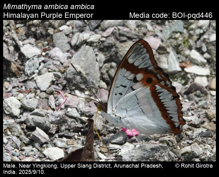 Anonymous 2025. Mimathyma ambica (Kollar, [1844]) – Indian Purple Emperor. In Kunte, K., S. Sondhi, and P. Roy (Chief Editors). Butterflies of India, v. 4.12. Published by the Indian Foundation for Butterflies. URL: https://www.ifoundbutterflies.org/mimathyma-ambica, accessed 2025/10/06.