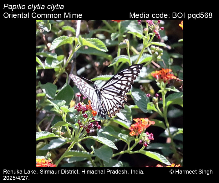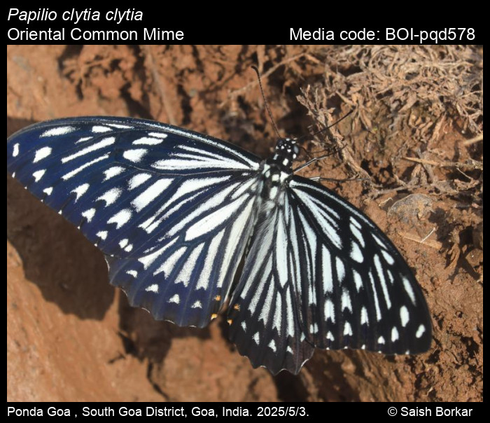 Saji, K., R. Lovalekar, G. Agavekar, S. Debnath 2025. Papilio clytia Linnaeus, 1758 – Common Mime. In Kunte, K., S. Sondhi, and P. Roy (Chief Editors). Butterflies of India, v. 4.12. Published by the Indian Foundation for Butterflies. URL: https://www.ifoundbutterflies.org/papilio-clytia, accessed 2025/10/06.