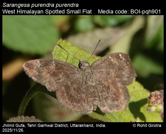 Anonymous 2026. Sarangesa purendra Moore, 1882 – Spotted Small Flat. In Kunte, K., S. Sondhi, and P. Roy (Chief Editors). Butterflies of India, v. 4.12. Published by the Indian Foundation for Butterflies. URL: https://www.ifoundbutterflies.org/sarangesa-purendra, accessed 2026/04/17.