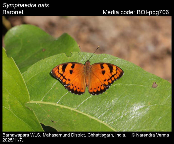 Anonymous 2025. Symphaedra nais (Forster, 1771) – Baronet. In Kunte, K., S. Sondhi, and P. Roy (Chief Editors). Butterflies of India, v. 4.12. Published by the Indian Foundation for Butterflies. URL: https://www.ifoundbutterflies.org/symphaedra-nais, accessed 2025/12/06.