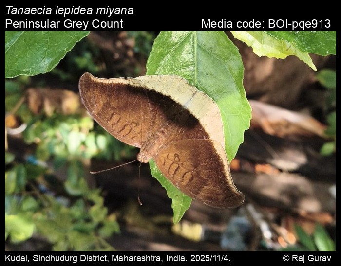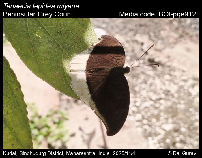 Anonymous 2025. Tanaecia lepidea (Butler, 1868) – Grey Count. In Kunte, K., S. Sondhi, and P. Roy (Chief Editors). Butterflies of India, v. 4.12. Published by the Indian Foundation for Butterflies. URL: https://www.ifoundbutterflies.org/tanaecia-lepidea, accessed 2025/11/15.