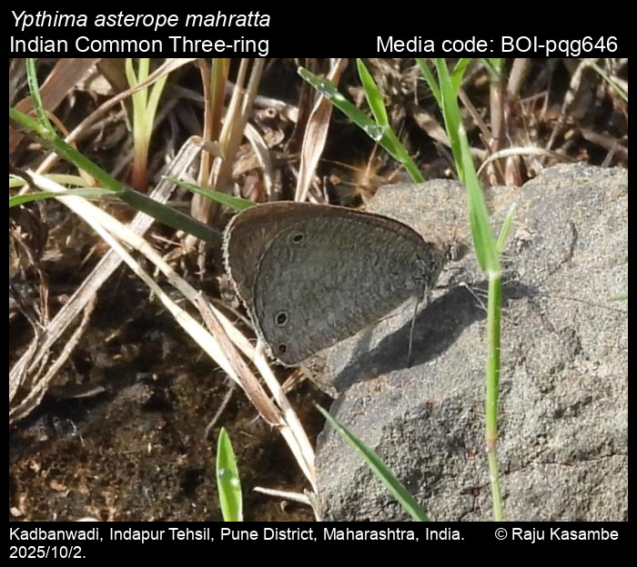 Anonymous 2025. Ypthima asterope (Klug, 1832) – Common Three-ring. In Kunte, K., S. Sondhi, and P. Roy (Chief Editors). Butterflies of India, v. 4.12. Published by the Indian Foundation for Butterflies. URL: https://www.ifoundbutterflies.org/ypthima-asterope, accessed 2025/12/06.