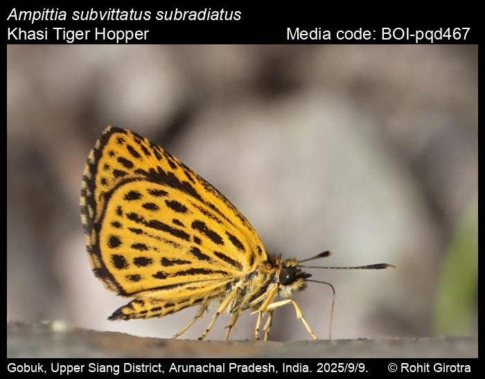 Anonymous 2025. Ampittia subvittatus (Moore, 1878) – Tiger Hopper. In Kunte, K., S. Sondhi, and P. Roy (Chief Editors). Butterflies of India, v. 4.12. Published by the Indian Foundation for Butterflies. URL: https://www.ifoundbutterflies.org/ampittia-subvittatus, accessed 2025/10/07.