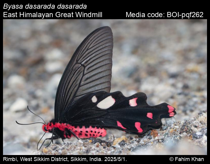 Anonymous 2025. Byasa dasarada (Moore, [1858]) – Great Windmill. In Kunte, K., S. Sondhi, and P. Roy (Chief Editors). Butterflies of India, v. 4.12. Published by the Indian Foundation for Butterflies. URL: https://www.ifoundbutterflies.org/byasa-dasarada, accessed 2025/11/16.