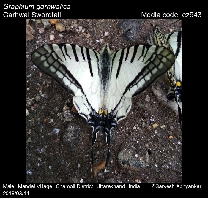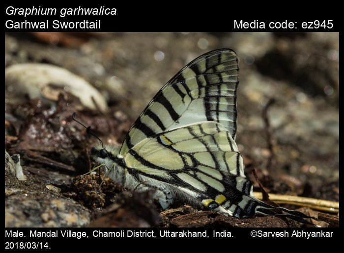 Anonymous 2025. Graphium garhwalica (Katayama, 1988) – Garhwal Swordtail. In Kunte, K., S. Sondhi, and P. Roy (Chief Editors). Butterflies of India, v. 4.12. Published by the Indian Foundation for Butterflies. URL: https://www.ifoundbutterflies.org/graphium-garhwalica, accessed 2025/11/06.