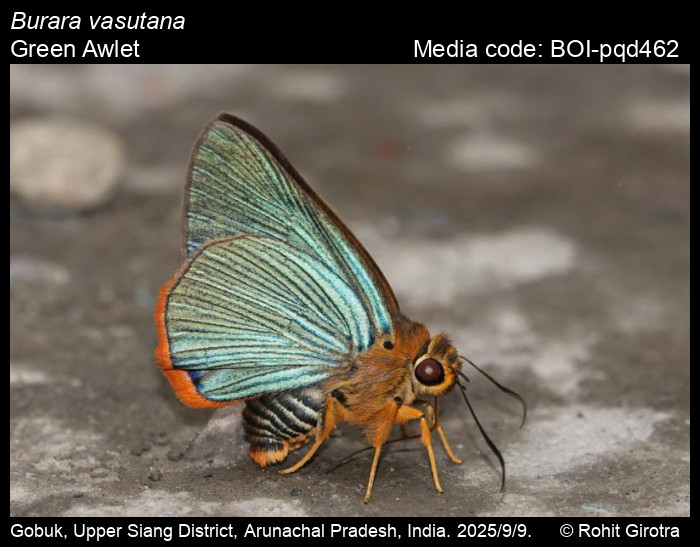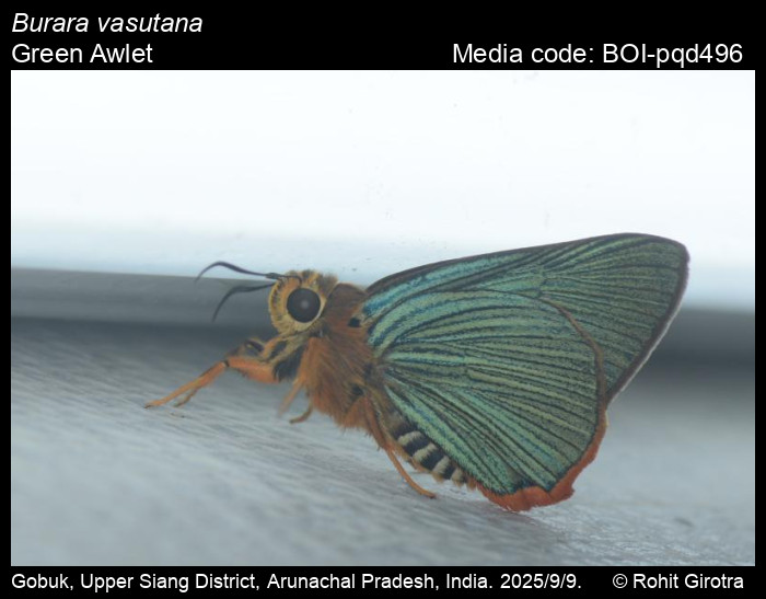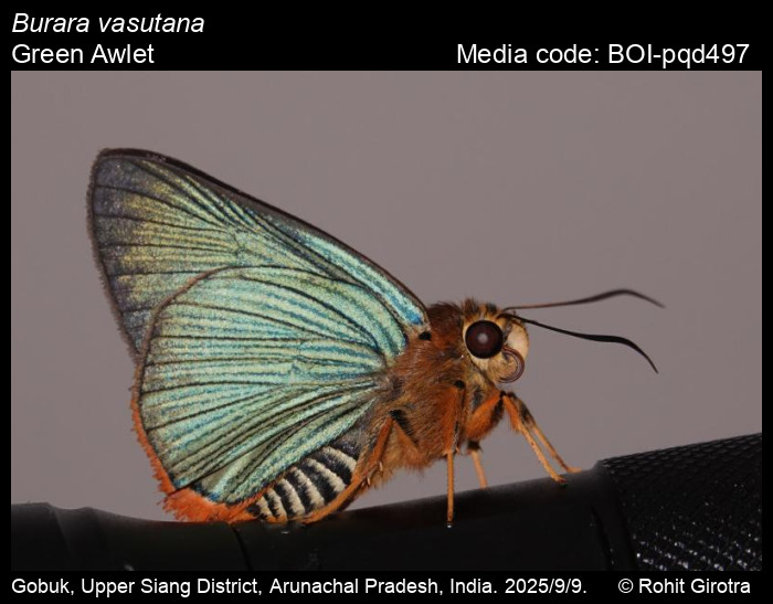 Anonymous 2025. Burara vasutana (Moore, [1866]) – Green Awlet. In Kunte, K., S. Sondhi, and P. Roy (Chief Editors). Butterflies of India, v. 4.12. Published by the Indian Foundation for Butterflies. URL: https://www.ifoundbutterflies.org/index.php/burara-vasutana, accessed 2025/10/07.