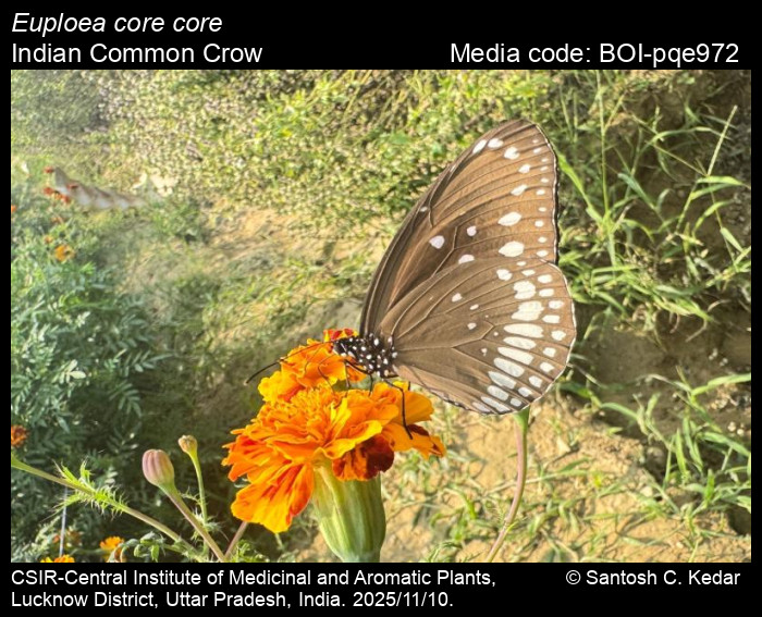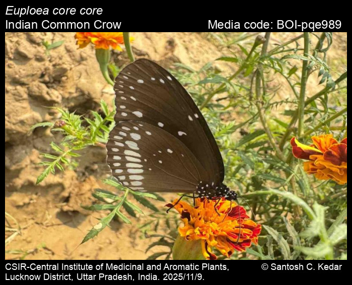 Anonymous 2025. Euploea core (Cramer, [1780]) – Common Crow. In Kunte, K., S. Sondhi, and P. Roy (Chief Editors). Butterflies of India, v. 4.12. Published by the Indian Foundation for Butterflies. URL: https://www.ifoundbutterflies.org/index.php/euploea-core, accessed 2025/11/21.
