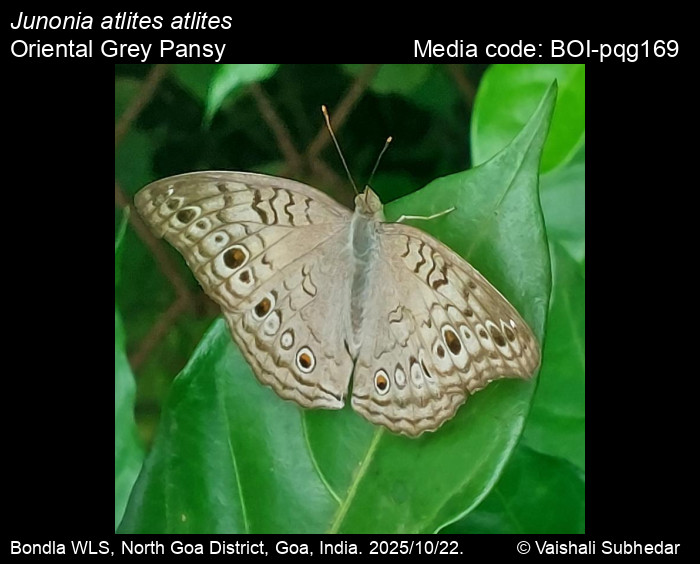 Anonymous 2025. Junonia atlites (Linnaeus, 1763) – Grey Pansy. In Kunte, K., S. Sondhi, and P. Roy (Chief Editors). Butterflies of India, v. 4.12. Published by the Indian Foundation for Butterflies. URL: https://www.ifoundbutterflies.org/index.php/junonia-atlites, accessed 2025/11/26.