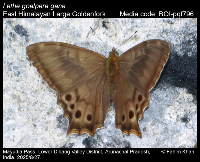Anonymous 2025. Lethe goalpara (Moore, [1866]) – Large Goldenfork. In Kunte, K., S. Sondhi, and P. Roy (Chief Editors). Butterflies of India, v. 4.12. Published by the Indian Foundation for Butterflies. URL: https://www.ifoundbutterflies.org/index.php/lethe-goalpara, accessed 2025/11/21.