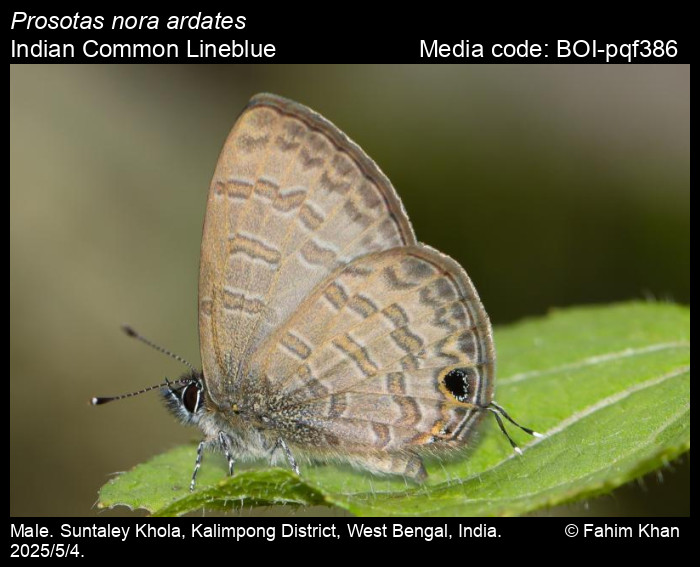 Saji K. and A. Soman 2025. Prosotas nora (C. Felder, 1860) – Common Lineblue. In Kunte, K., S. Sondhi, and P. Roy (Chief Editors). Butterflies of India, v. 4.12. Published by the Indian Foundation for Butterflies. URL: https://www.ifoundbutterflies.org/index.php/prosotas-nora, accessed 2025/11/21.