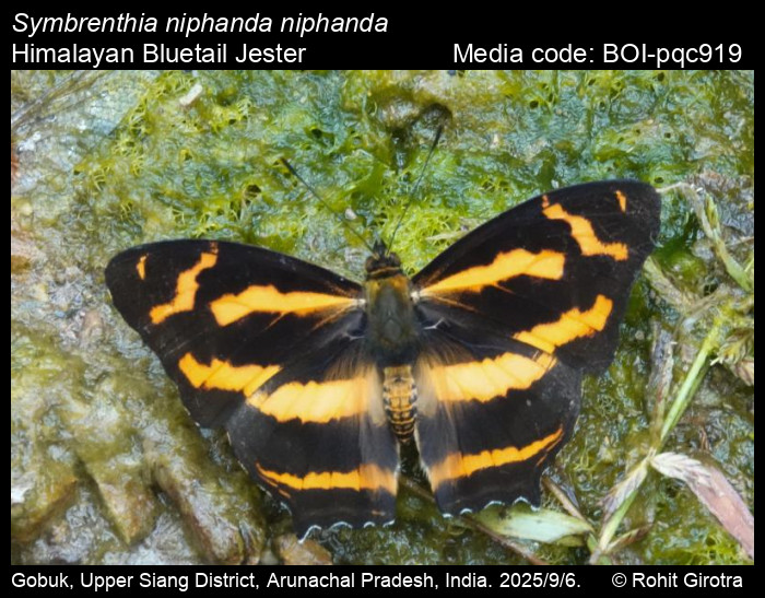 Anonymous 2025. Symbrenthia niphanda Moore, 1872 – Bluetail Jester. In Kunte, K., S. Sondhi, and P. Roy (Chief Editors). Butterflies of India, v. 4.12. Published by the Indian Foundation for Butterflies. URL: https://www.ifoundbutterflies.org/index.php/symbrenthia-niphanda, accessed 2025/10/08.