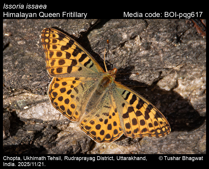 Anonymous 2025. Issoria issaea (Doherty, 1886) – Himalayan Queen Fritillary. In Kunte, K., S. Sondhi, and P. Roy (Chief Editors). Butterflies of India, v. 4.12. Published by the Indian Foundation for Butterflies. URL: https://www.ifoundbutterflies.org/issoria-issaea, accessed 2025/11/28.