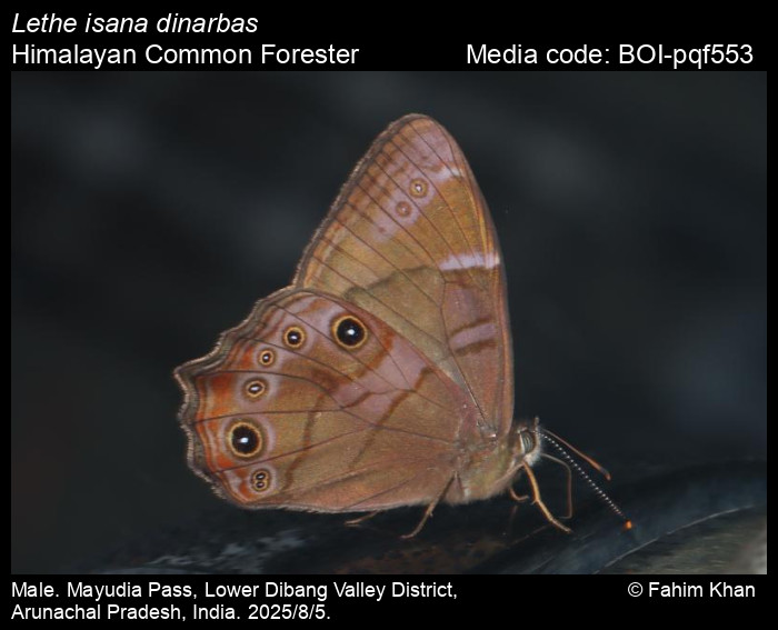 Anonymous 2025. Lethe isana (Kollar, [1844]) – Common Forester. In Kunte, K., S. Sondhi, and P. Roy (Chief Editors). Butterflies of India, v. 4.12. Published by the Indian Foundation for Butterflies. URL: https://www.ifoundbutterflies.org/lethe-isana, accessed 2025/11/26.