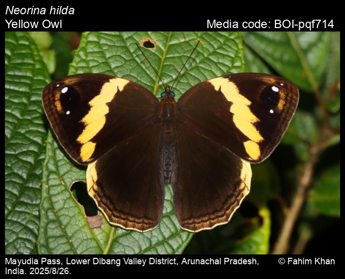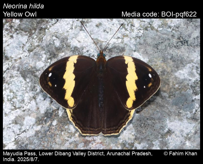 Anonymous 2025. Neorina hilda Westwood, [1851] – Yellow Owl. In Kunte, K., S. Sondhi, and P. Roy (Chief Editors). Butterflies of India, v. 4.12. Published by the Indian Foundation for Butterflies. URL: https://www.ifoundbutterflies.org/neorina-hilda, accessed 2025/11/27.