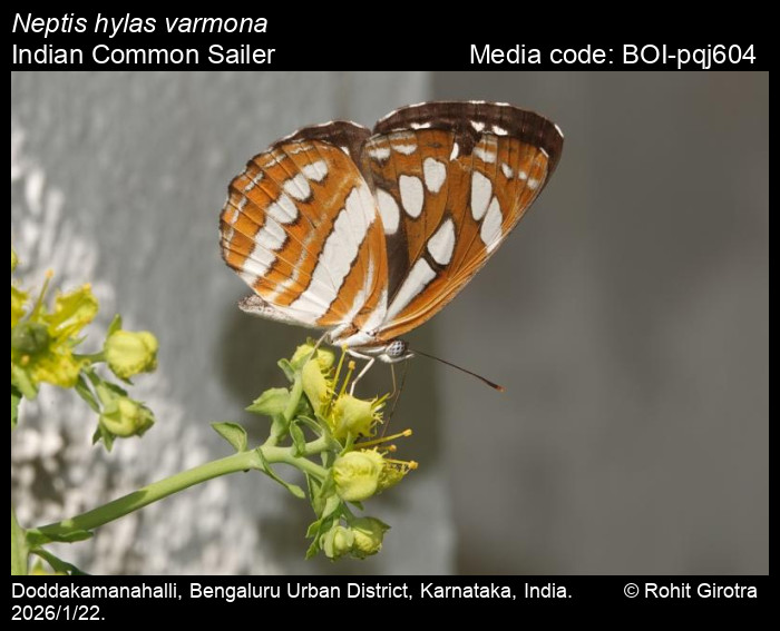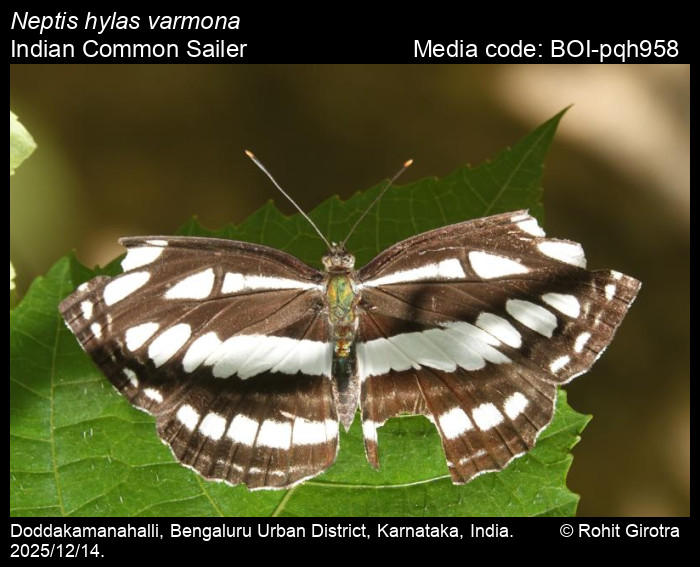 Saji, K., A. Soman, M. Bhakare & Manoj P 2026. Neptis hylas (Linnaeus, 1758) – Common Sailer. In Kunte, K., S. Sondhi, and P. Roy (Chief Editors). Butterflies of India, v. 4.12. Published by the Indian Foundation for Butterflies. URL: https://www.ifoundbutterflies.org/neptis-hylas, accessed 2026/03/10.