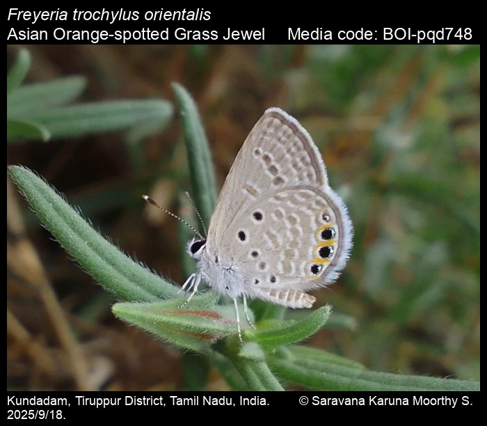 Anonymous 2025. Freyeria trochylus (Freyer, 1845) – Orange-spotted Grass Jewel. In Kunte, K., S. Sondhi, and P. Roy (Chief Editors). Butterflies of India, v. 4.12. Published by the Indian Foundation for Butterflies. URL: https://www.ifoundbutterflies.org/freyeria-trochylus, accessed 2025/10/05.