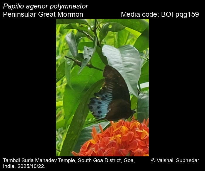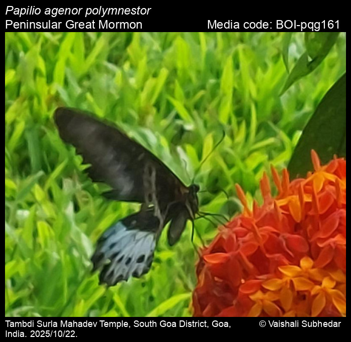 The peninsular Indian subspecies, Papilio agenor polymnestor – Peninsular Great Mormon (formerly as Papilio polymnestor – Blue Mormon), is a State Butterfly of Maharashtra.