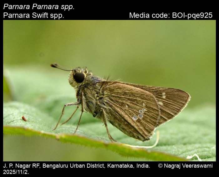Anonymous 2025. Parnara spp - – Parnara Swift spp.. In Kunte, K., S. Sondhi, and P. Roy (Chief Editors). Butterflies of India, v. 4.12. Published by the Indian Foundation for Butterflies. URL: https://www.ifoundbutterflies.org/parnara-parnara-spp, accessed 2025/11/17.