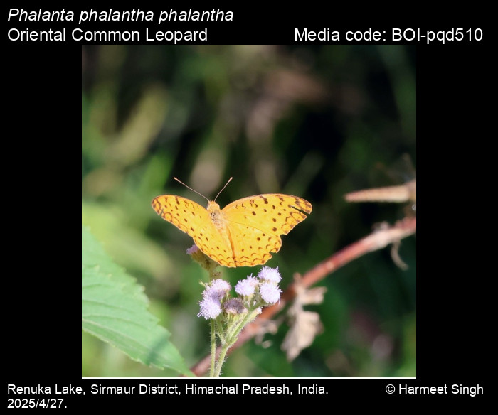 Saji K. , K. Kunte & A. Bora 2025. Phalanta phalantha (Drury, [1773]) – Common Leopard. In Kunte, K., S. Sondhi, and P. Roy (Chief Editors). Butterflies of India, v. 4.12. Published by the Indian Foundation for Butterflies. URL: https://www.ifoundbutterflies.org/phalanta-phalantha, accessed 2025/10/07.