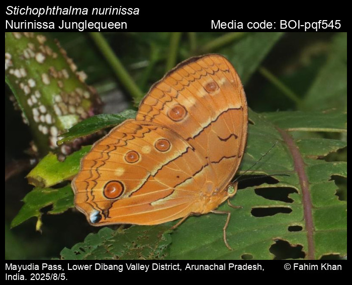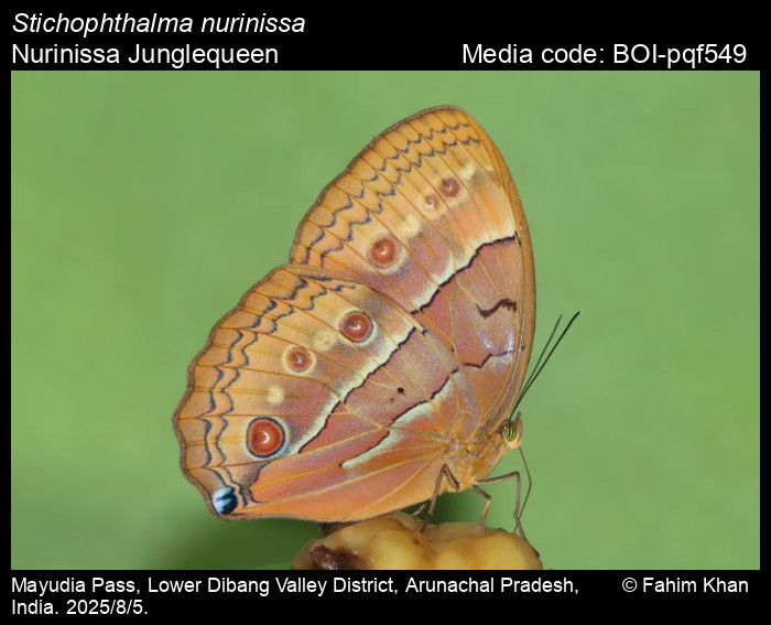 Anonymous 2025. Stichophthalma nurinissa de Nicéville, 1890 – Nurinissa Junglequeen. In Kunte, K., S. Sondhi, and P. Roy (Chief Editors). Butterflies of India, v. 4.12. Published by the Indian Foundation for Butterflies. URL: https://www.ifoundbutterflies.org/stichophthalma-nurinissa, accessed 2025/11/20.
